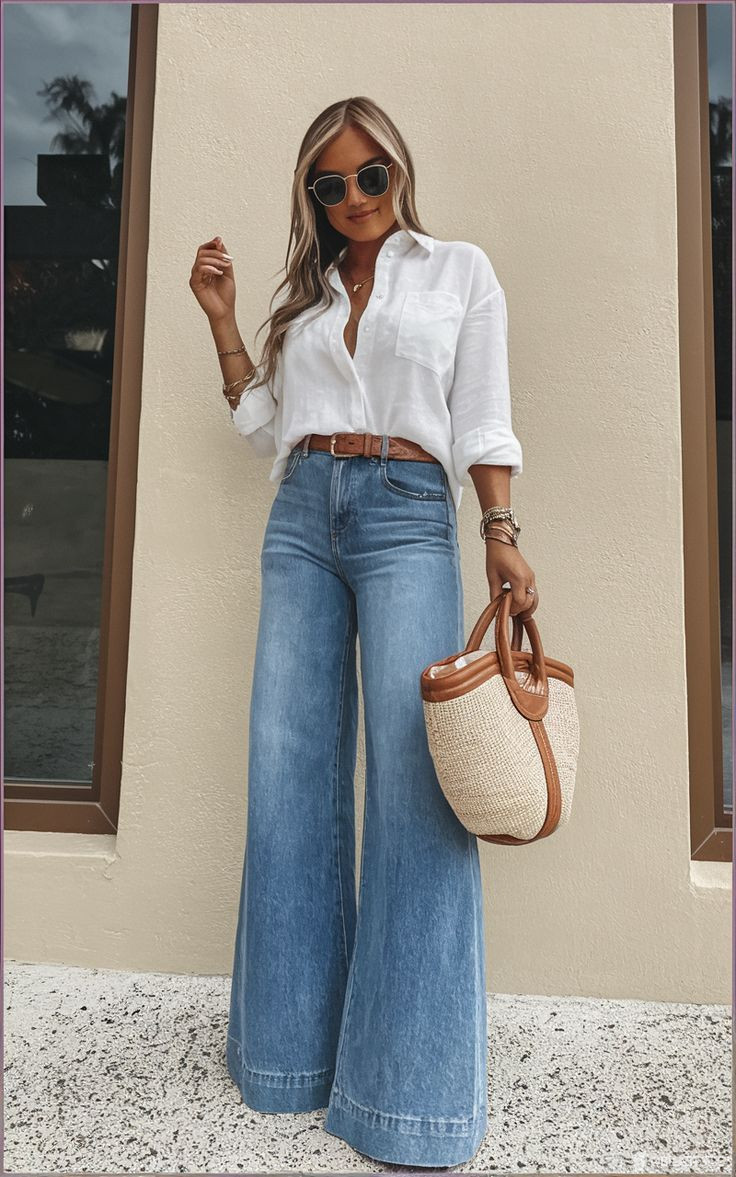 Jestli máte ráda jednoduchost, zkuste obyčejné bavlněné tílko nebo crop top. I když to zní jako něco z jiného módního období, ve spojení se širokými kalhotami to funguje skvěle – outfit působí svěže a současně. Pro více zahalený vzhled stačí košili nebo halenku zastrčit dovnitř. Právě kalhoty s vyšším pasem to dovolují a výsledek působí vyváženě.