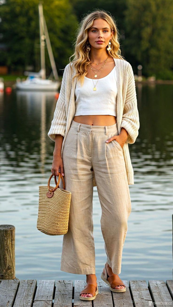 Dny jsou pořád teplé, ale večery už nesou jistou jemnou chladivost, která nás nutí sáhnout po trochu jiných vrstvách. Ještě není září, ale už to není ani červenec – je to ten mezistupeň, kdy začínáme myslet dopředu. Právě teď je ideální chvíle otevřít šatník a podívat se, jak na něj připravit měkčí, přechodovou variantu. A možná se nechat inspirovat kouskem, který teď uvidíte všude – širokýma kalhotama.